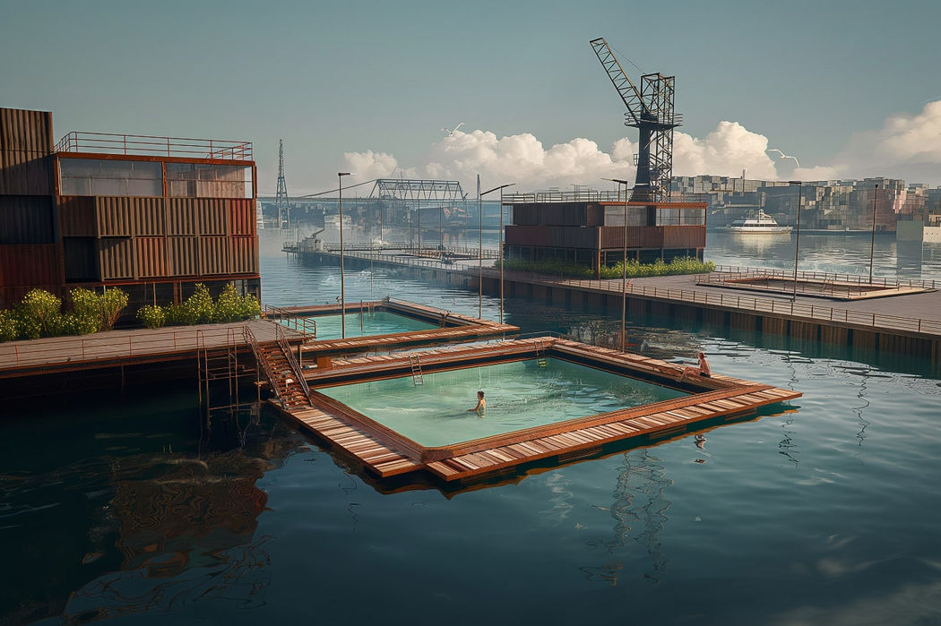 Tous prennent place directement dans l'anse d'un port de plaisance. Si la qualité de l'eau le permet, pouvoir se baigner au coeur d'un port historique peut devenir l'attraction principale de la ville. Le design prévoit une structure flottante renforcée, avec un espace de bain clos en son centre. De large plages de bois entoure le bassin circulaire pour offrir un solarium aux habitants.